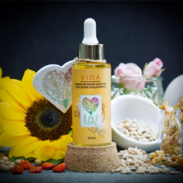 O VIDA é um ácido hialurônico vegano, ao contrário da maioria dos disponíveis no mercado, que são de origem animal. É associado a um blend de óleos vegetais e óleos essenciais que permitem seu funcionamento pleno no combate dos efeitos do envelhecimento.