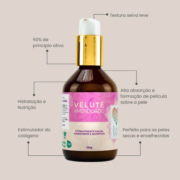 Quando a pele está desvitalizada, é o momento ideal para se deliciar com Veluté Amendoado! Penetra equilibradamente nas camadas cutâneas, e os resultados dos 15 compostos naturais podem ser percebidos na forma de maciez da pele. Essa sensação de pele tratada e aveludada pode permanecer por dias, mantendo-se profundamente hidratada e nutrida, além de um sensorial maravilhoso.